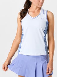 The Penguin Women's Racer Tank Polo puts a new spin on a classic style. This sporty V-neck tank has a piping accent, ribbed polo collar with stripe detail, a modest racerback cut, contrast binding on the armholes, printed side panels, quick-drying moisture wicking comfort and a Penguin Pete logo on the left chest.